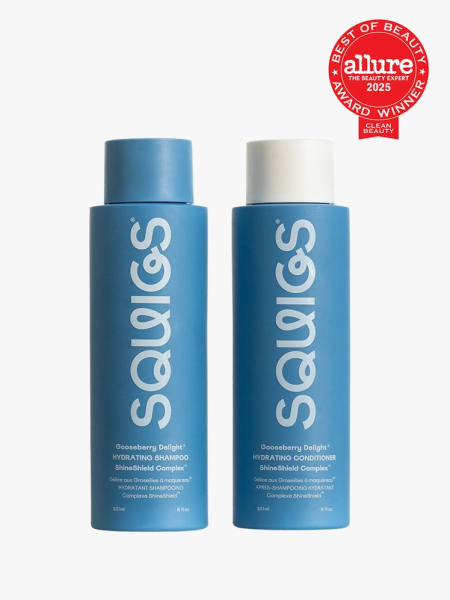 Why it's worth it: A 2025 Best of Beauty Award-winning duo, the Squigs Gooseberry Delight Hydrating Shampoo and Conditioner deliver serious moisture à la the brand’s ShineShield Complex, which features a blend of vitamin C-rich amla and moringa oils as well as strengthening red algae extract. The shampoo uses gentle, coconut-derived surfactants to cleanse (no sulfates here), so hair feels clean, not stripped. Next, the conditioner offers lightweight hydration from the aforementioned complex, smoothing each strand without weighing it down or leaving a greasy residue. The payoff? Hair that stays silky, detangled, and glossy for days—think full, bouncy, blowout-level shine, no salon visit required.